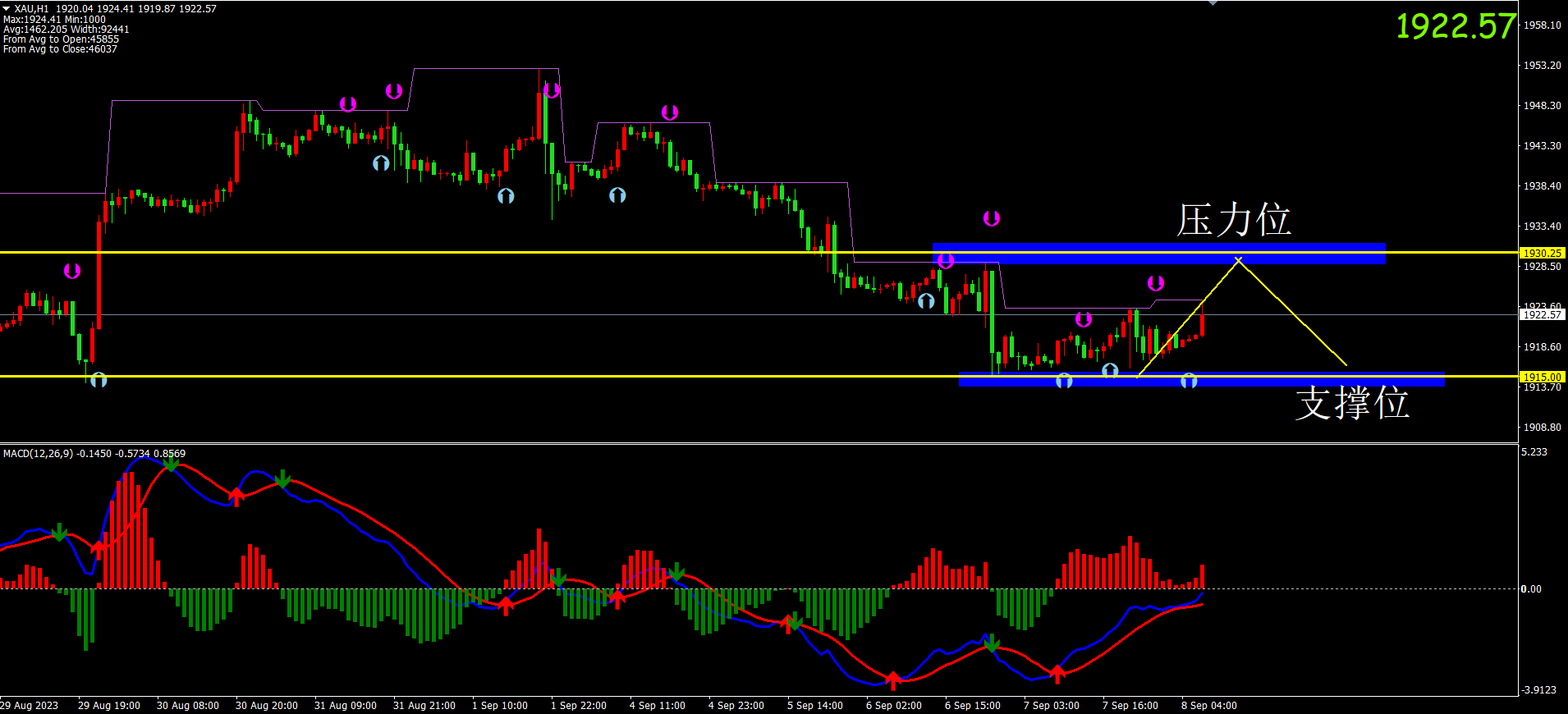 周五(9月8日)亚市早盘,美元指数保持强势,目前位于104.90附近;现货黄金继续承压,金价目前交投在1917美元/盎司附近。对金价技术走势进行分析。美国强劲PMI数据令金价承压,在美国数据走强和美联储发出鹰派信号的背景下,市场参与者纷纷涌向美元,黄金价格仍处于守势。美元指数周三升至3月15日以来的新高,一度突破105.00。
