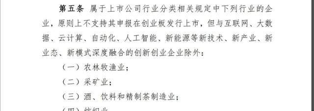 今年1月份,网络上流传着一份“IPO红绿灯行业审核标准细则”,里面提到白酒属于“禁止上市”业务。
