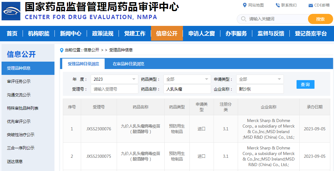 红星资本局9月8日消息,据国家药品监督管理局药品审评中心官网,默沙东的九价人乳头瘤病毒疫苗(酿酒酵母)(受理号:JXSS2300076;JXSS2300075)新适应症上市申请近日获受理。