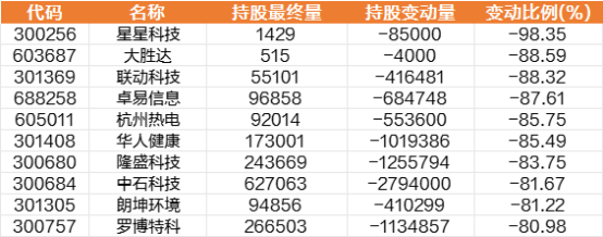 同期,北向资金大比例减仓个股名单中,星星科技变动比例最高,大胜达、联动科技、卓易信息、杭州热电、华人健康、隆盛科技等变动比靠前。