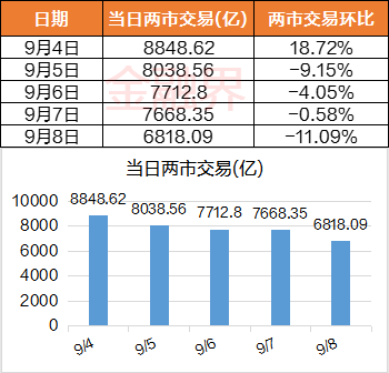 本周前两个交易成交额都在8000亿元上方,但周二起市场交投热情持续降温,周三、周五成交额均不足8000亿,周五跌破7000一。本周A股两市日均成交额萎缩至亿7817.28元,前一周该数据报9445.33亿元。