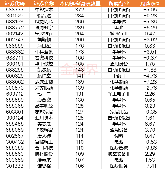 本周获得超过100家机构调研的上市公司