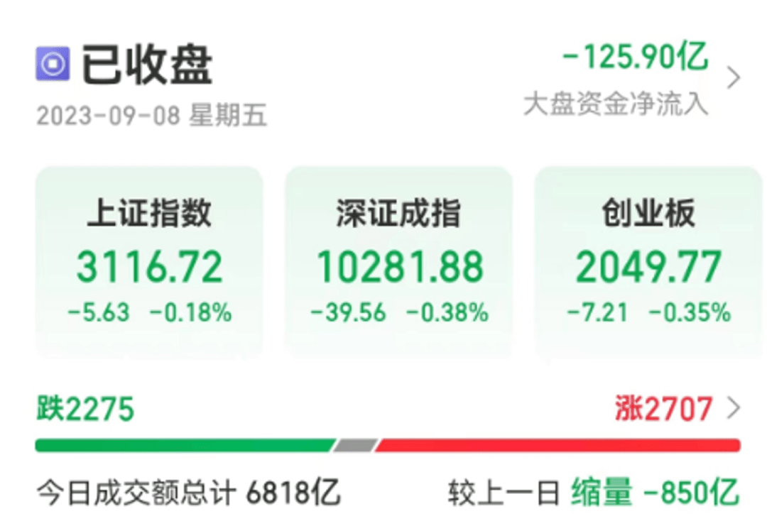 今日三大指数集体收跌,沪指跌0.18%,深成指跌0.38%,北证50跌0.61%,创业板指跌0.35%。沪深两市全天成交额6818亿元。题材板块上,光刻机、卫星导航、国防军工等板块领涨,传媒、游戏、BC电池等板块跌幅居前。