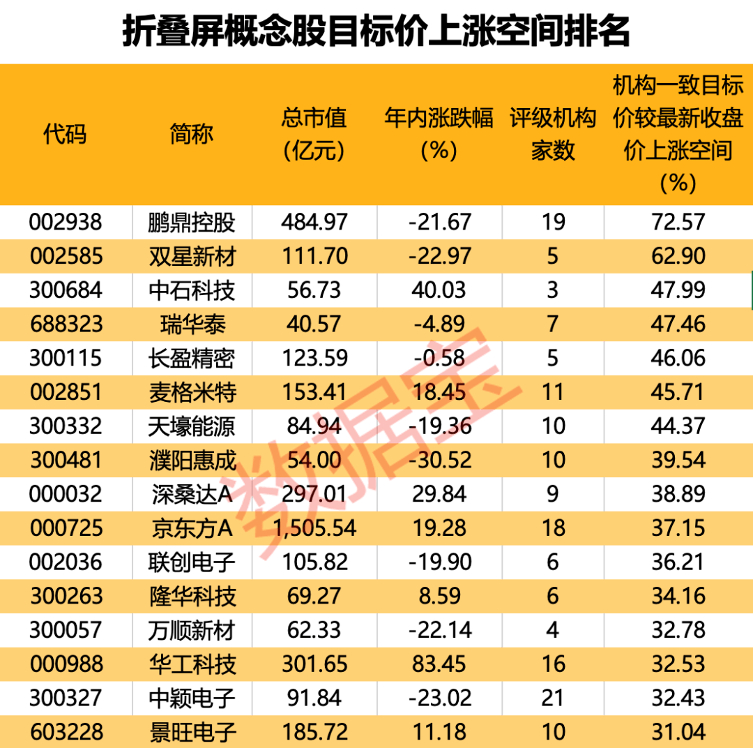 16只折叠屏概念股