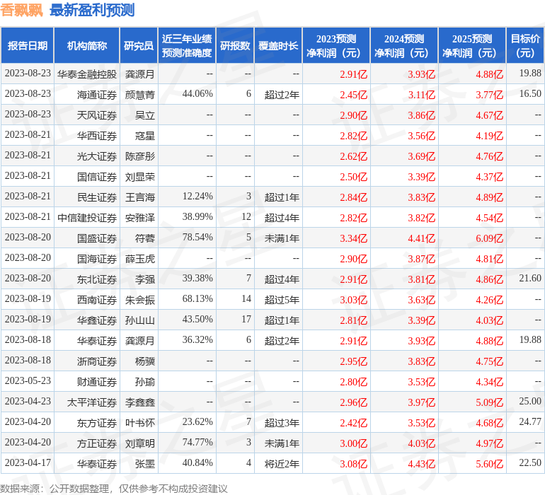 2023年9月8日香飘飘(603711)发布公告称公司于2023年9月7日接受机构调研,华创证券、国华兴益保险、平安基金、和泰人寿保险、睿远基金、信泰人寿保险、国寿安保基金、诚盛投资、中金基金、金百镕投资、鑫元基金、中天国富证券、星石投资、淳厚基金、龙航资产、兴华基金、泾溪投资、方物基金、磐厚投资、天治基金、同犇投资、农银汇理基金、嘉实基金、乾璐投资、珠海会远私募基金、源乐晟资产、西部利得基金、广东谢诺辰阳私募、深圳正圆投资、中信建投证券、国海证券、兴业证券、国金证券、广银理财、太平洋证券、诺安基金、兴证证券、景顺长城基金、中国人保资产、天弘基金参与。