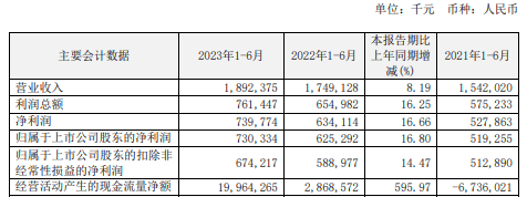 上半年归母净利润同比增长16.8%