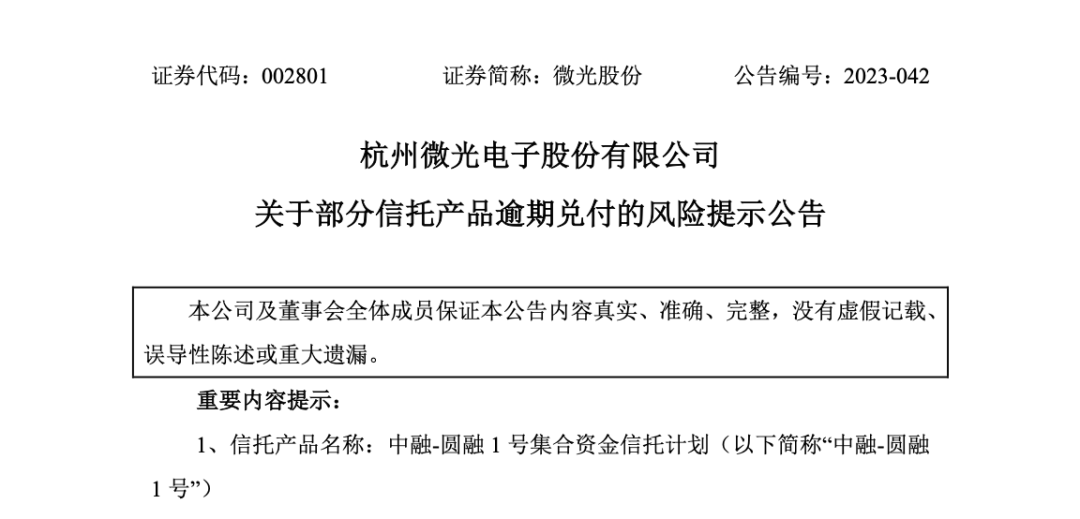 刚“踩雷”中融信托不久,微光股份再次发布公告称,公司部分中融信托旗下信托产品逾期兑付。