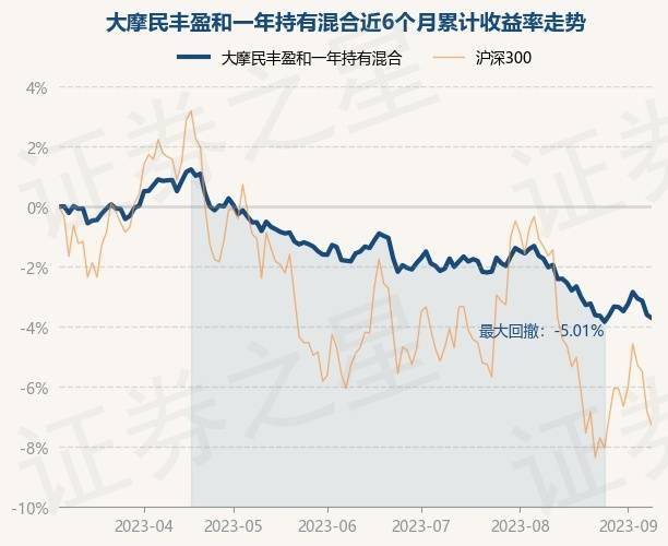 9月8日,大摩民丰盈和一年持有混合最新单位净值为0.9356元,累计净值为0.9356元,较前一交易日下跌0.11%。历史数据显示该基金近1个月下跌2.02%,近3个月下跌1.96%,近6个月下跌3.73%,近1年下跌4.62%。该基金近6个月的累计收益率走势如下图: