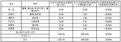 注:上表中“已授予的限制性股票数量”为剔除了离职激励对象涉及的限制性股票后的数量,下同。