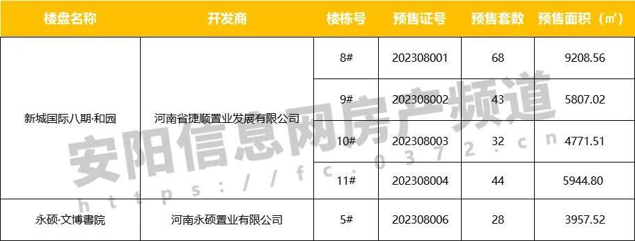 根据安阳信息网汤阴楼市数据统计中心不完全统计,8月汤阴城区两家楼盘取得预售证,分别为永硕·文博書院和新城国际八期·和园。预售套数共计215套,预售面积29689.41㎡。新城国际八期·和园首次取得预售证,期待该楼盘接下来的表现。