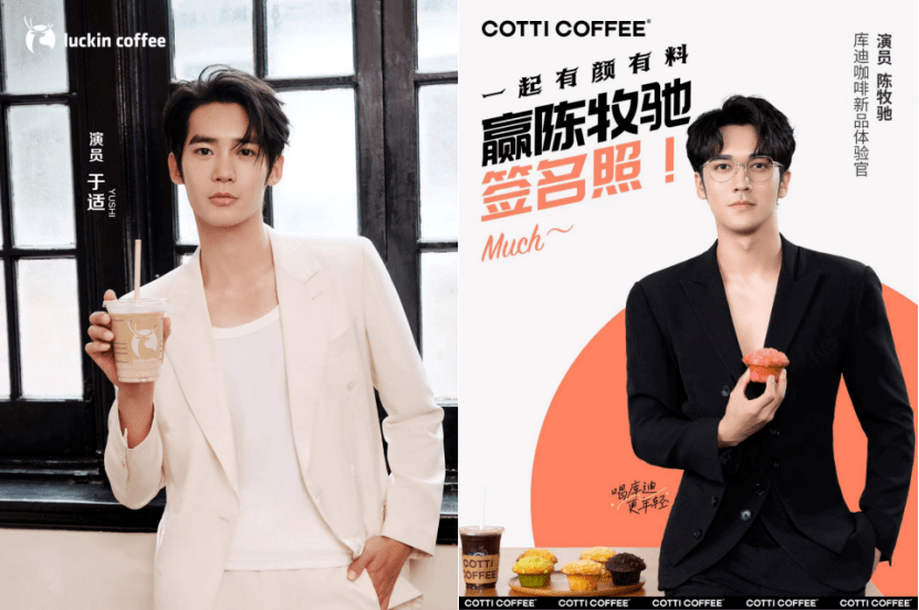 左右两位演员皆在电影《封神》中饰演了主要角色,图源:瑞幸、库迪官方