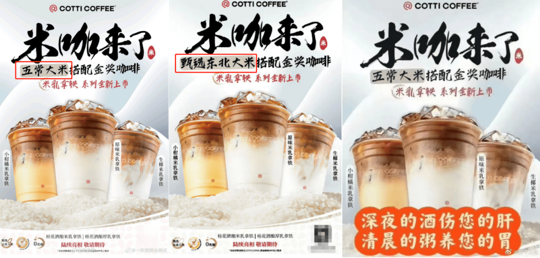 从这个角度来看,库迪似乎希望借势于瑞幸“酱香拿铁”的爆火,同时又区隔于“伤身的酒”,更富温情地为年轻人端出了“养生的粥”。