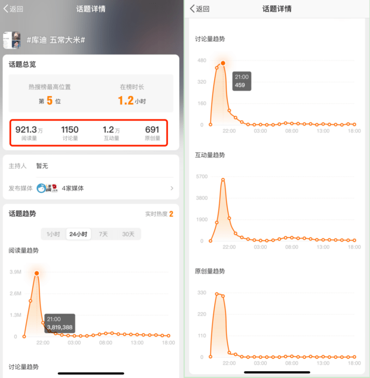 9月7日晚,一则#库迪咖啡 五常大米#话题登榜微博热搜第5。截至8日晚19:30,该话题阅读量达921.9万,蓝鲸财经、头条新闻、西安网、西安广播电视台等主体参与了相关讨论,总体讨论量超1000条。