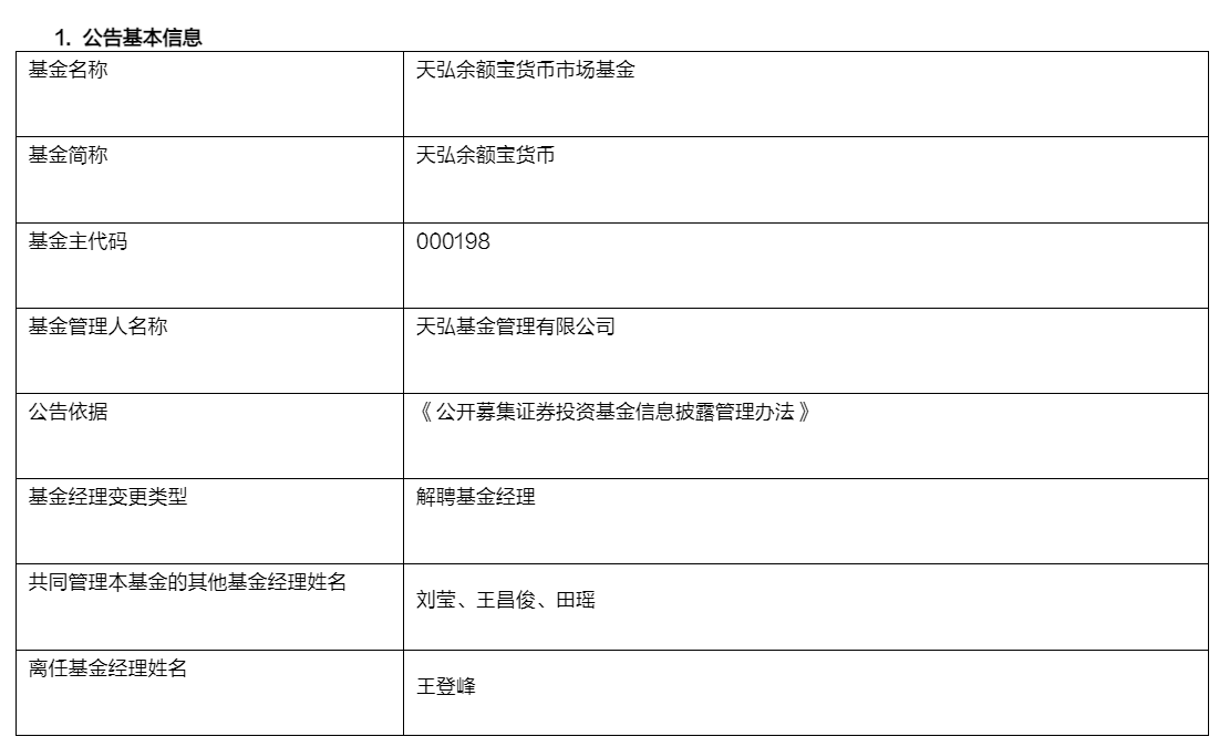 9月9日,天弘基金发布公告称,管理余额宝已有10年时间的基金经理王登峰离任,也不再转任该公司其他工作岗位。