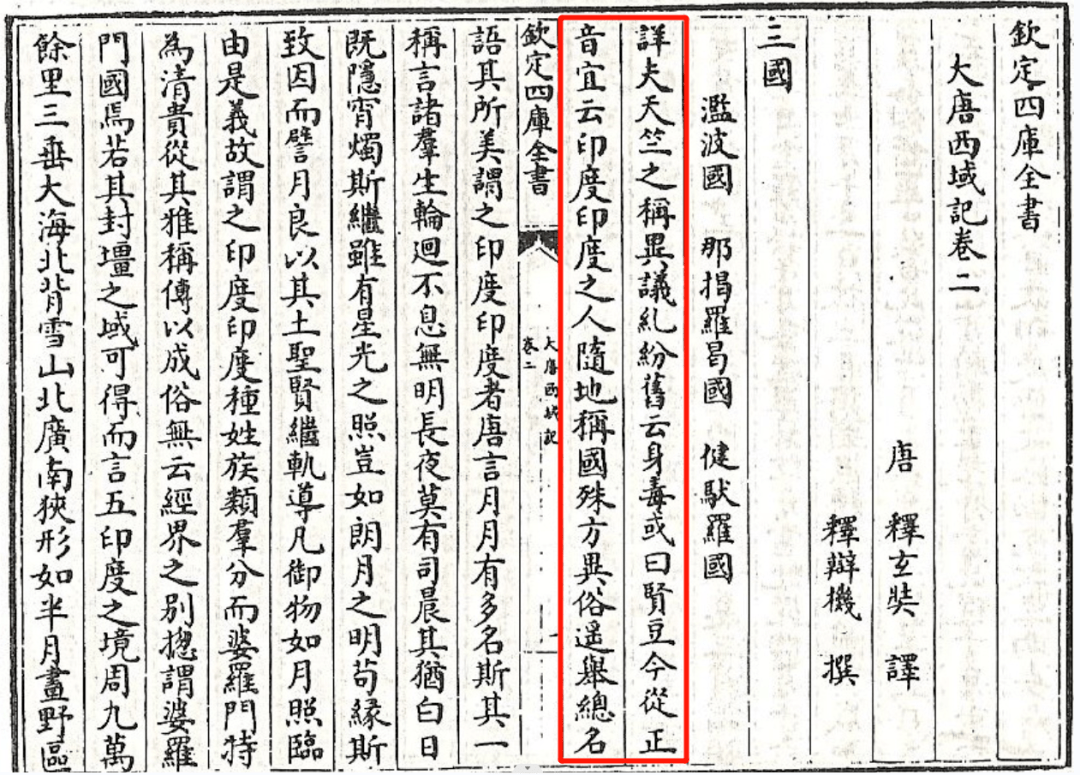 玄奘的《大唐西域记》对印度国名翻译的表述