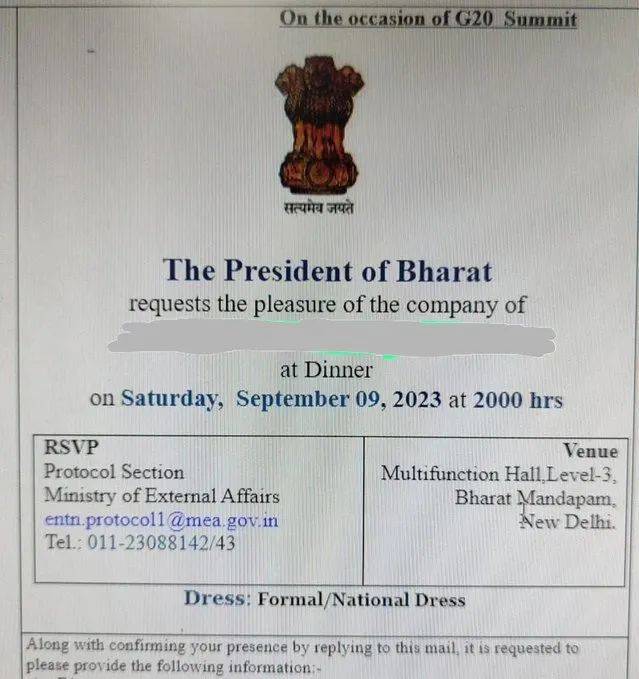 消息一出,外界一片哗然,不少印度邦行政长官立刻在社交媒体上发声,坚决响应莫迪老仙的号召,对印度国名更名一事表示支持。甚至在即将开幕的G20峰会上,印度总统向各国领导人发出的晚宴邀请函,已经堂而皇之地写上了“The President of Bharat”。看来,莫迪老仙这次不给印度改名成功是不会罢休了。