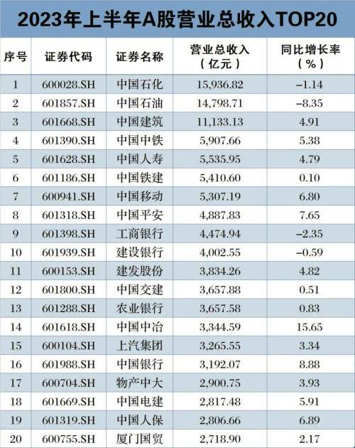 营收排名靠前的依次还有中国中铁、中国人寿、中国铁建等央企巨头。