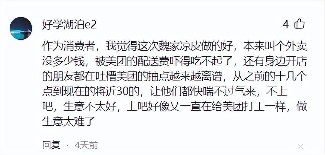 那么,作为本土的民营连锁餐饮代表,魏家凉皮为何公开向美团“宣战”?