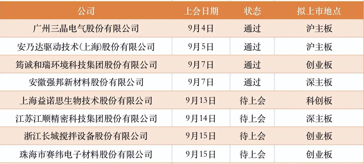 本周(9月4日—9月8日),A股“4过4”,三晶电气、安乃达、筠诚和瑞、强邦股份均顺利过会。