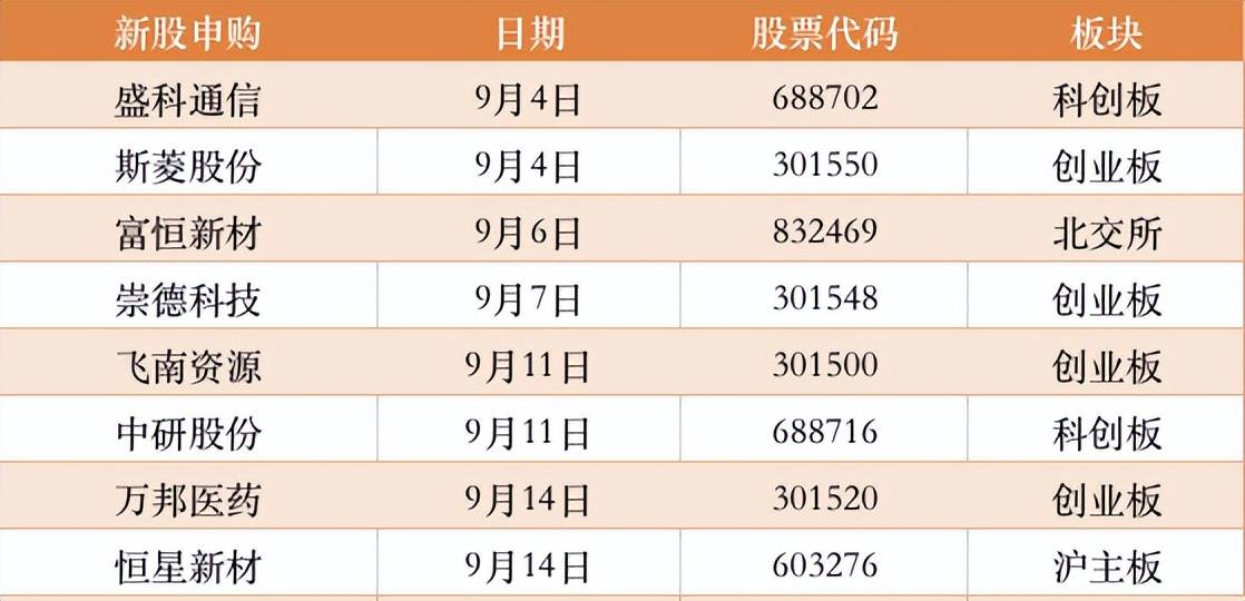 本周共有斯菱股份、盛科通信、富恒新材、崇德科技四只新股进行申购,下周A股暂定有飞南资源、中研股份、万邦医药、恒星新材等4只新股进行申购。
