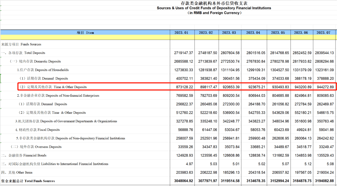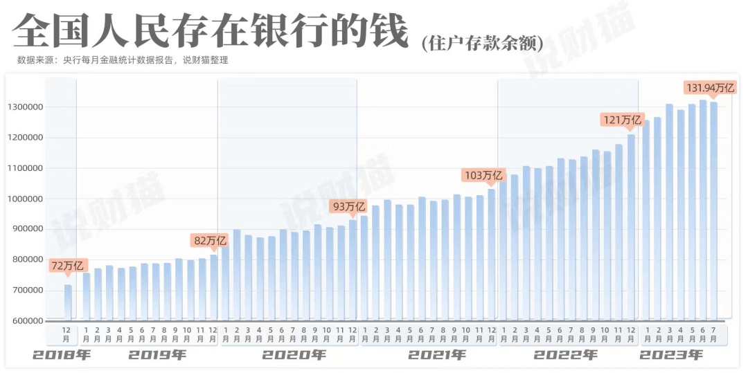 已知:全国人民存在银行的钱,截至7月末的数字是: