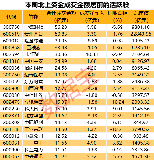 本周A股主要股指震荡下跌,北上资金合计一周净流出47.56亿元,其中沪股通净流出46.31亿元,深股通净流出1.25亿元。北上资金已连续五周净流出。