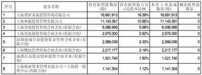 (四)限售股上市流通情况表: