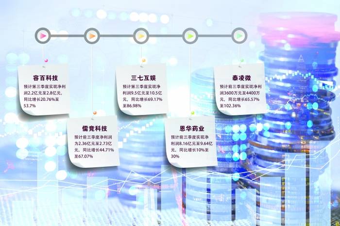 如变频节能与智能控制综合方案提供商儒竞科技预计,公司前三季度实现营收14.58亿元至16.28亿元,同比增长24.89%至39.45%;净利润为2.36亿元至2.73亿元,同比增长44.71%至67.07%。