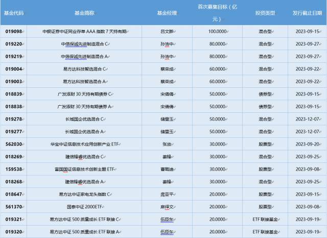 上周(9.4-9.8)新发基金一览(不包含传统封闭式基金)
