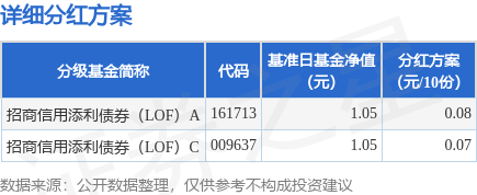 9月11日发布《招商信用添利债券型证券投资基金(LOF)2023年度第三次分红公告》。本次分红为2023年度的第三次分红。公告显示,本次分红的收益分配基准日为9月9日,详细分红方案如下: