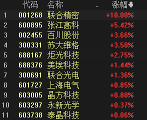广信材料拉升涨超17%,联合精密2连板,张江高科、普利特、七彩化学、南大光电、容大感光等涨幅居前。