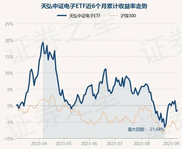9月8日,天弘中证电子ETF最新单位净值为0.9217元,累计净值为0.9217元,较前一交易日上涨0.33%。历史数据显示该基金近1个月下跌6.86%,近3个月下跌3.46%,近6个月下跌1.41%,近1年下跌3.97%。该基金近6个月的累计收益率走势如下图: