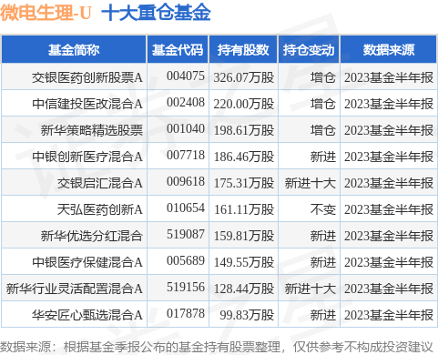 重仓微电生理-U的前十大公募基金请见下表:
