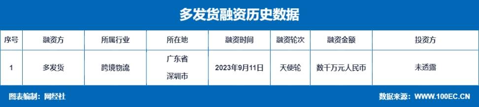 9月11日,国内全自营跨境物流平台“多发货”完成数千万元人民币的天使轮融资,本轮融资资金将用于产研投入、人才投入和品牌建设等方面。
