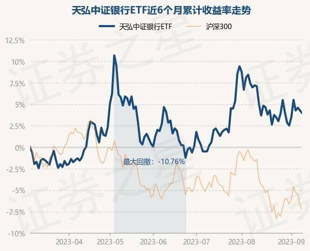 9月8日,天弘中证银行ETF最新单位净值为0.9885元,累计净值为0.9885元,较前一交易日下跌0.29%。历史数据显示该基金近1个月下跌2.81%,近3个月下跌0.71%,近6个月上涨3.91%,近1年上涨5.91%。该基金近6个月的累计收益率走势如下图: