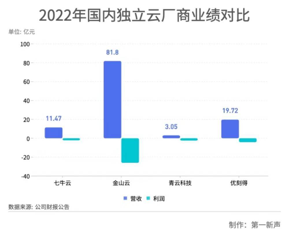 另一独立云厂商UCloud优刻得同样连续亏损多年,2020年、2021年、2022年净利亏损额分别为3.43亿元、6.33亿元、4.13亿元。2023年上半年其营收7.39亿元,同比减少29.31%;亏损1.88亿元,较2022年同期减亏7190万元。