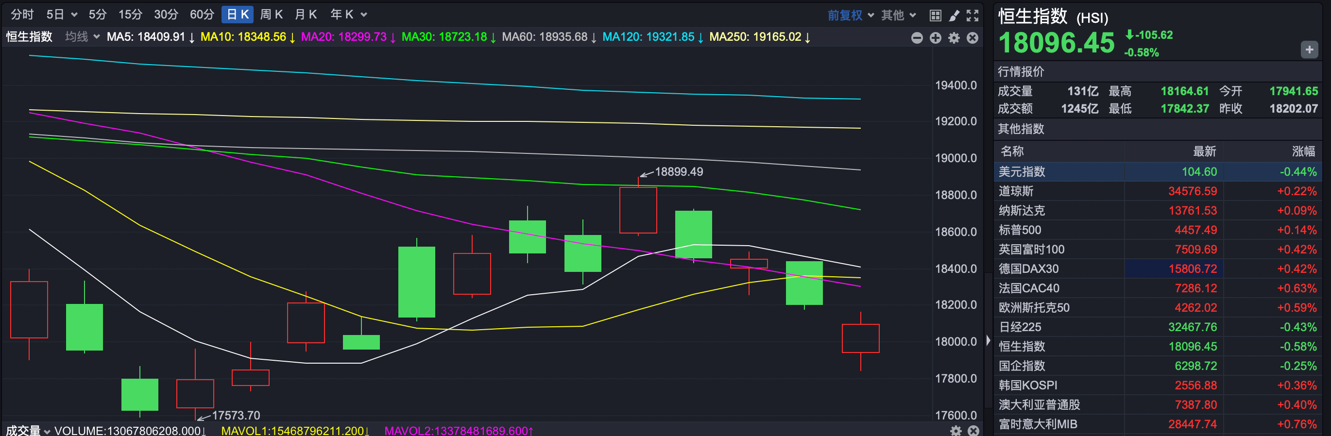 9月11日,港股市场低位震荡,恒生指数在一度跌破18000点的不利局面下,最终跌幅有所收窄。截至收盘,恒生指数下跌105.62点,以18096.45点报收,跌幅0.58%;恒生科技指数一度翻红,最终小跌0.21%,以4083.14点报收。
