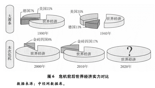 (10)危机具有强烈的再分配效应。每次危机过后,都会出现大国实力的转移和国际经济秩序的重大变化。从数据上也可以看到,大萧条后,全球经济中心从欧洲转向美洲,美国在全球经济中发挥主导作用,美元占据支配地位,各种国际组织诞生(IMF、联合国、世界银行等),全球政治经济格局发生重大变化。也就是说,危机起到了财富的再分配作用。