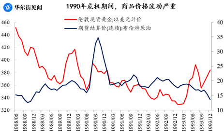 1990年的危机期间,金油价格均出现了较为明显的波动,尤其是油价,在短短六个月内均价环比就上涨了14.6%,金价的涨幅也超过了13.6%。