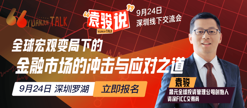 9月24日,华尔街见闻特邀晟元全球投资管理公司创始人,首席投资官【袁骏】在深圳举行线下交流会并讲授《宏观变局的应对之道》的下半部分课程,探讨宏观变局下的应对之道。点击报名>>