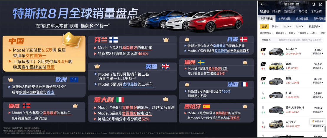另据乘联会8月9日发布的最新销量数据显示,8月特斯拉上海工厂交付量超8.4万,特斯拉Model Y以 65,316 辆位居8月总体乘用车销量榜首。