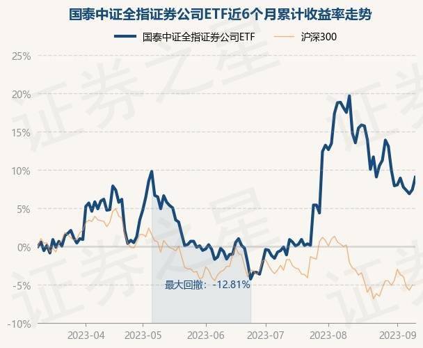 9月11日,国泰中证全指证券公司ETF最新单位净值为0.9777元,累计净值为0.9777元,较前一交易日上涨1.51%。历史数据显示该基金近1个月下跌4.99%,近3个月上涨9.79%,近6个月上涨9.09%,近1年上涨4.24%。该基金近6个月的累计收益率走势如下图: