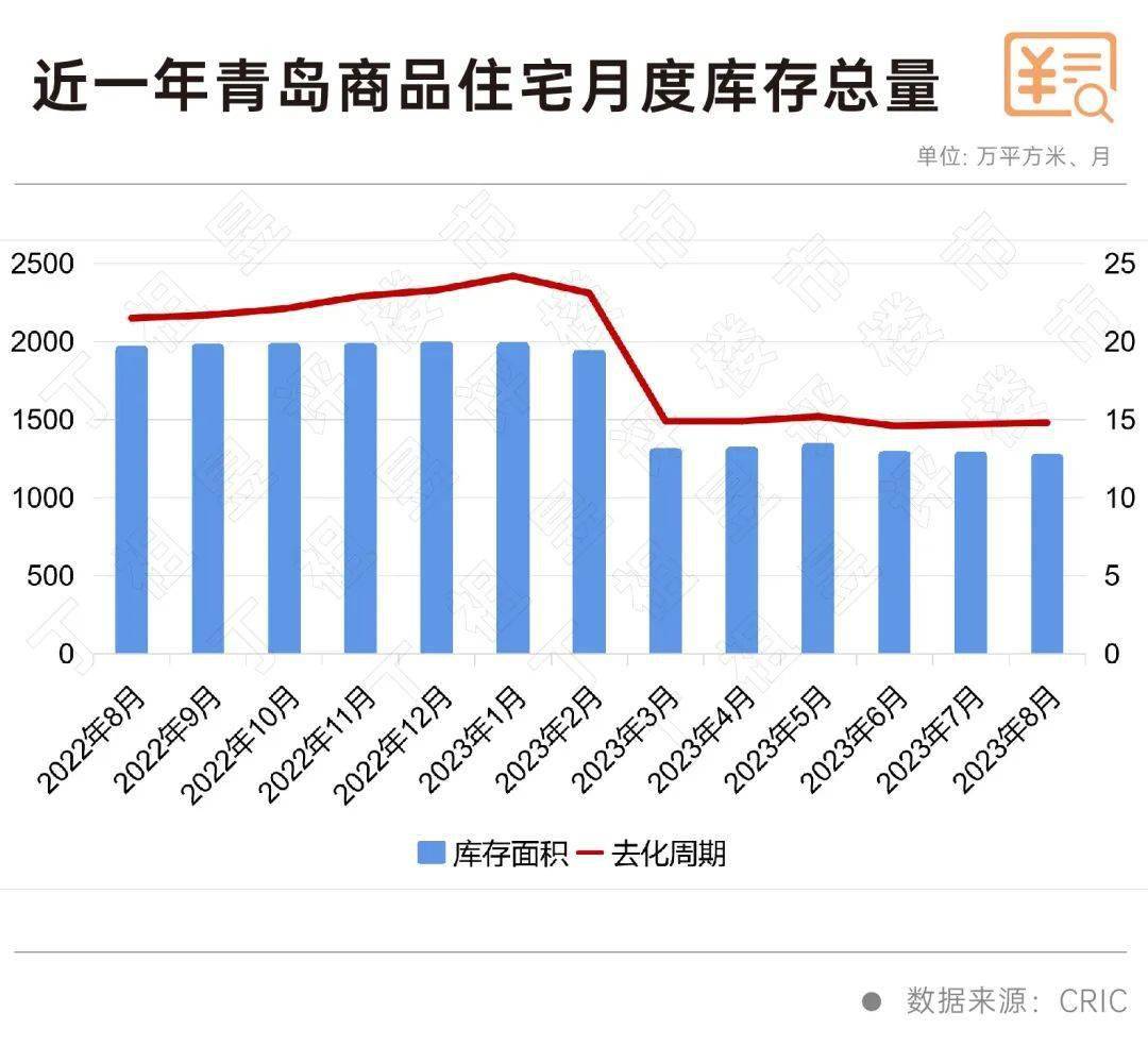 CRIC数据显示,8月青岛商品住宅库存1254.2万平方米,从去化周期来看,按照近12个月去化流速,去化周期约14.8个月。另外,据CRIC监测,青岛广义库存量已经逼近1亿平,潜在库存消化周期已经突破100个月,整体库存问题仍需要较长时间化解。