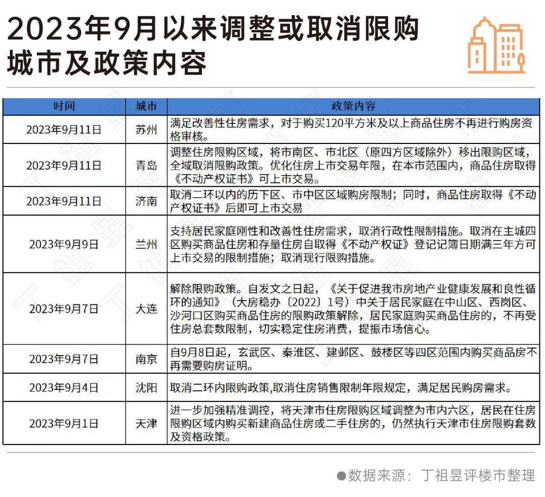 据不完全统计,截至目前已有10个大中城市全面取消限购政策,9月开局以来,就有6大城市官宣取消限购或限售,其中不乏省会城市,比如兰州、南京、沈阳和济南。