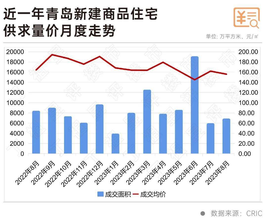 CRIC数据显示,2022年青岛商品住宅成交面积为1096.29万平方米,同比下降24%。
