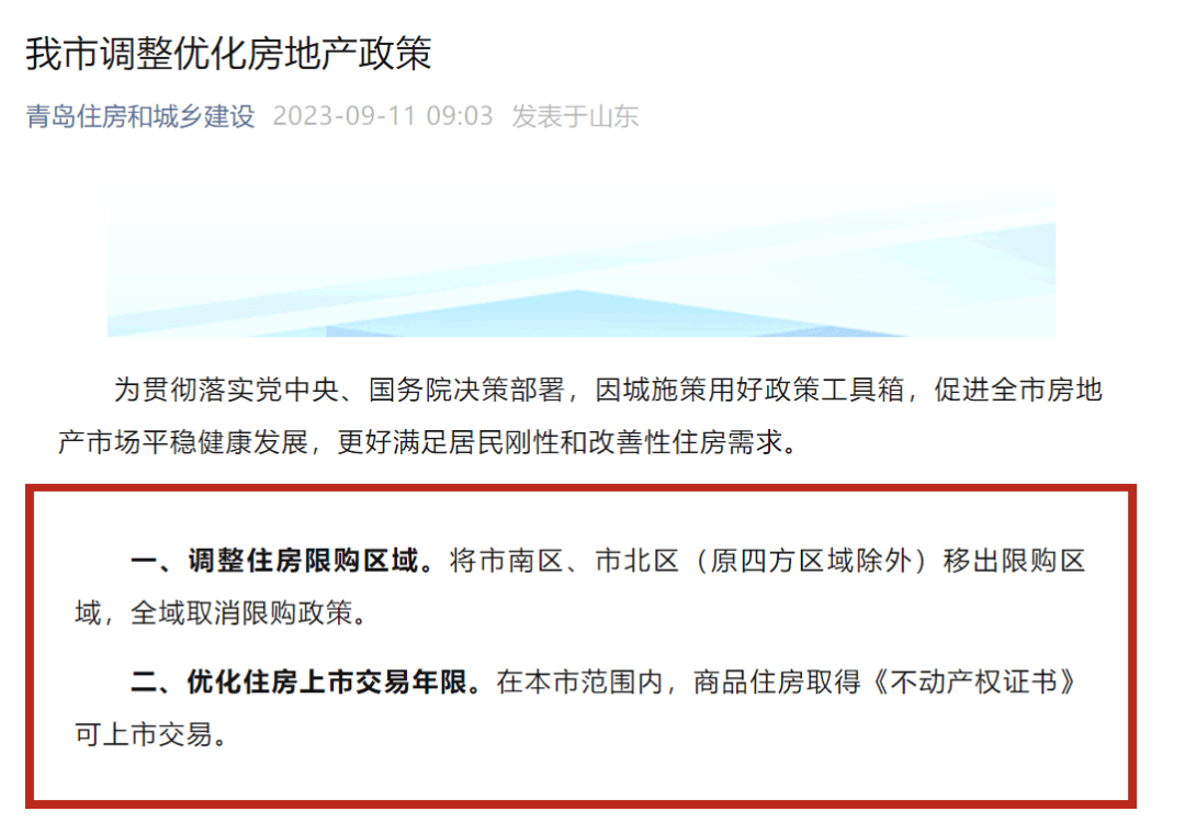 9月11日,济南、青岛两城双双官宣,全面取消限购和限售政策,释放出很强的信号意义。