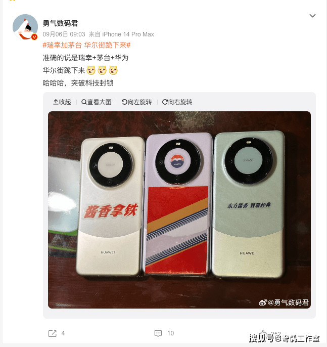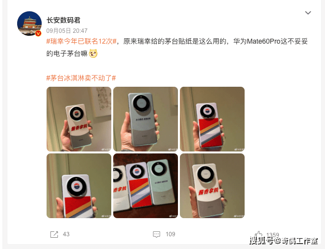 尽管在不少门户网站里,Mate60 Pro和酱香拿铁都不是同一个频道的事情,但还是有不少热衷于同人COS的网友,愣是给瑞幸送的茅台贴纸跟Mate60 Pro进行了一场跨界联动。