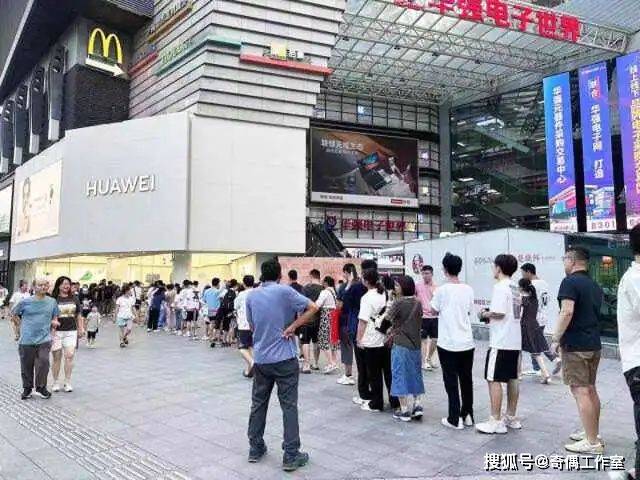 记者在深圳南山区万象天地华为旗舰店看到,华为Mate 60 系列的Pro版本和标准版已经到货,现场人山人海,来领取新机的顾客排起长队。