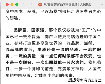 我们看到了中国只能做“世界工厂”的时代早就一去不复返,未来中国企业能向产业链更高端迈进,能打造出更多享誉世界的,那些充满东方神韵、大国气象的中国品牌,定能闯出光明的未来。