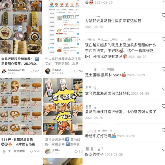 在小红书等社交平台中,搜索“盒马必买”出现了3万+篇笔记。不难发现,在盒马所有自有品牌的品类中,预制菜、风味鲜奶、烘焙、生鲜等短保冷藏商品是其最受消费者欢迎的优势品类。